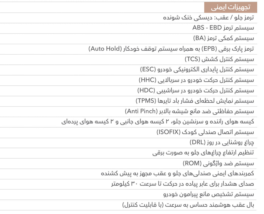 | کیسههای هوا | ۱۲ | ۸ | ۹ | ۱۰ |