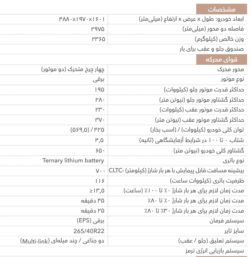 | نوع موتور | الکتریکی (دو موتور) | الکتریکی (دو موتور) | الکتریکی (دو موتور) | الکتریکی (یک موتور) |
