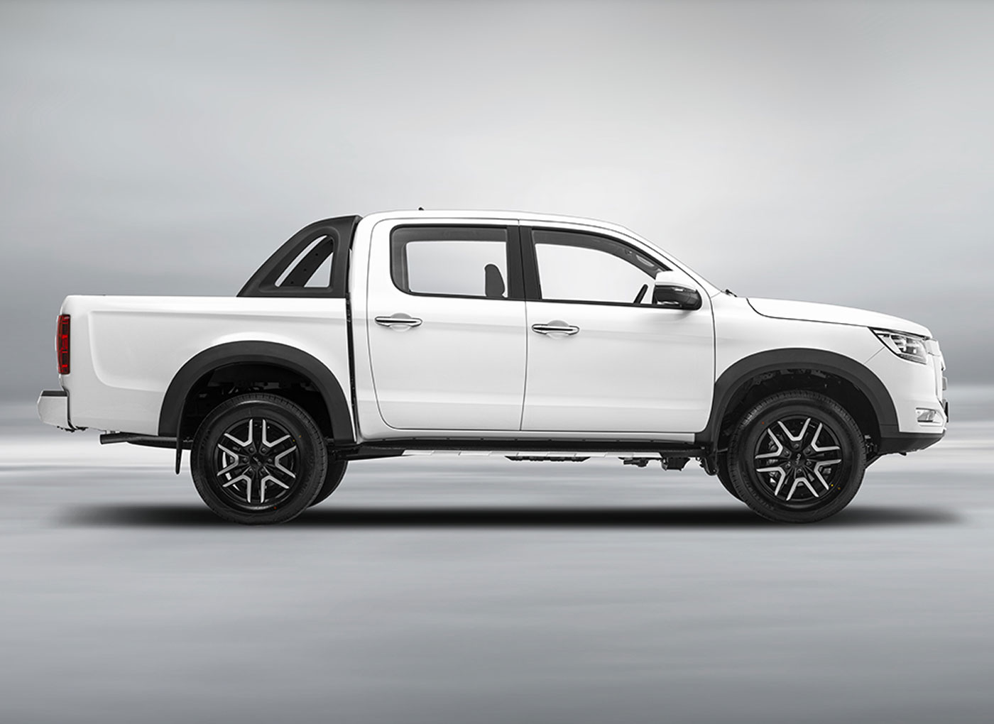 در نمای جانبی، T8 همچنان با استفاده از خطوط شکسته و طراحی جعبهای سعی میکند تا حس قدرت را تقویت کند. نکته قابلتوجه در طراحی این بخش، استفاده از فلاپهای بزرگ پلاستیکی مشکی روی لبه گلگیرها است که ظاهری خشنتر به خودرو میدهد. طراحی گلگیرها و خط شانه نسبتاً صاف است و نمایی اسپرت و ساده را ارائه میکند. خطوط و حجمپردازیها در کلوت نرمتر هستند و آدم را یاد پیکاپهای قدیمیتر آمریکایی میاندازند.
