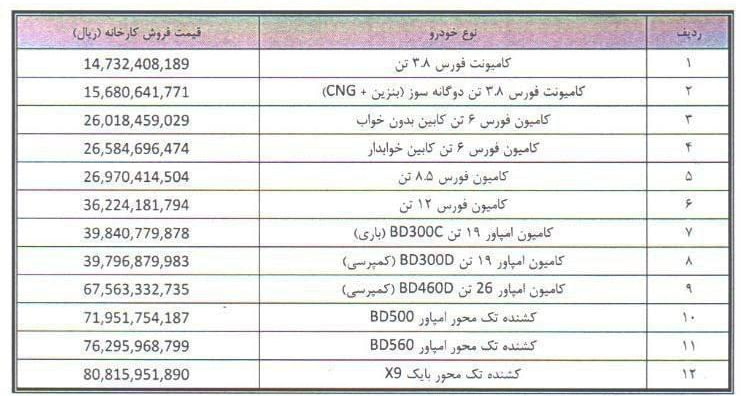 قیمت جدید کارخانهای محصولات بهمن دیزل ویژه تیر ۱۴۰۴ اعلام شد