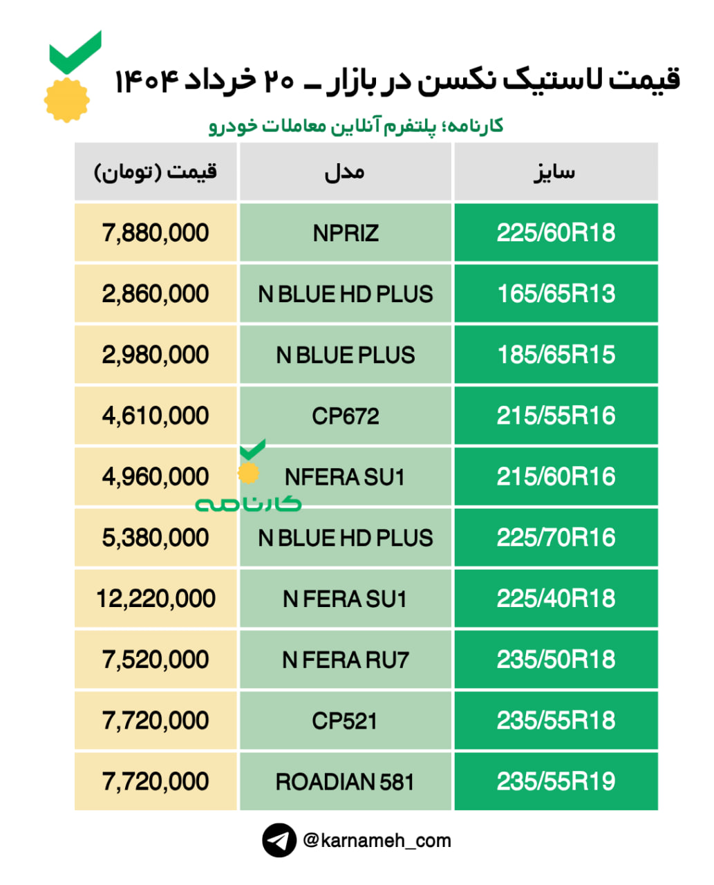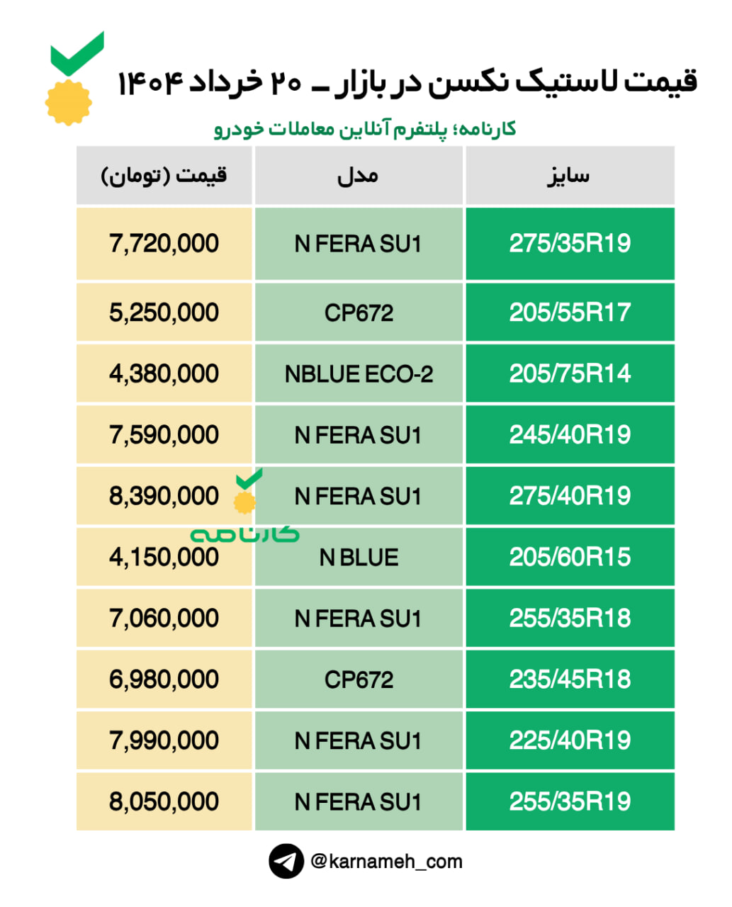 لیست قیمت لاستیک نکسن در بازار – ۲۰ خرداد ۱۴۰۴