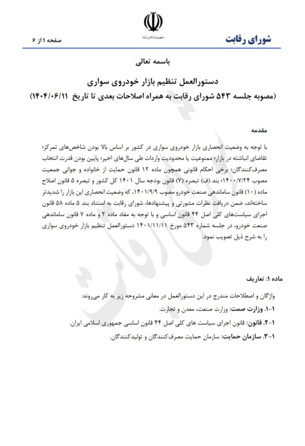 شورای رقابت بهتازگی دستورالعمل جدیدی برای فعالیت در بازار خودرو تنظیم و ابلاغ کرده است: