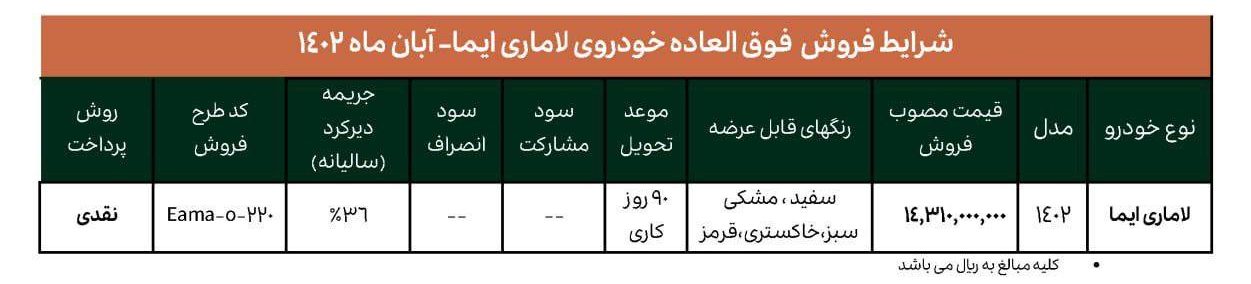 طرح جدید فروش لاماری ایما (سامانه یکپارچه) – آبان ۱۴۰۲