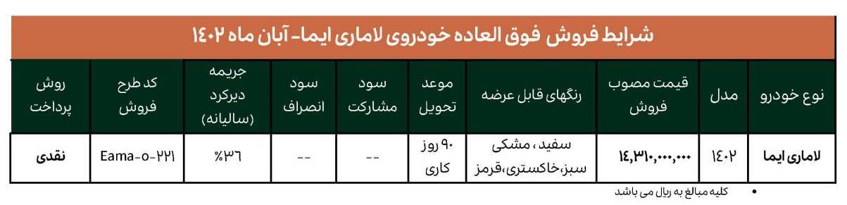 شرایط فروش لاماری ایما برای برندگان پاییز سامانه یکپارچه (آذر ۱۴۰۲)