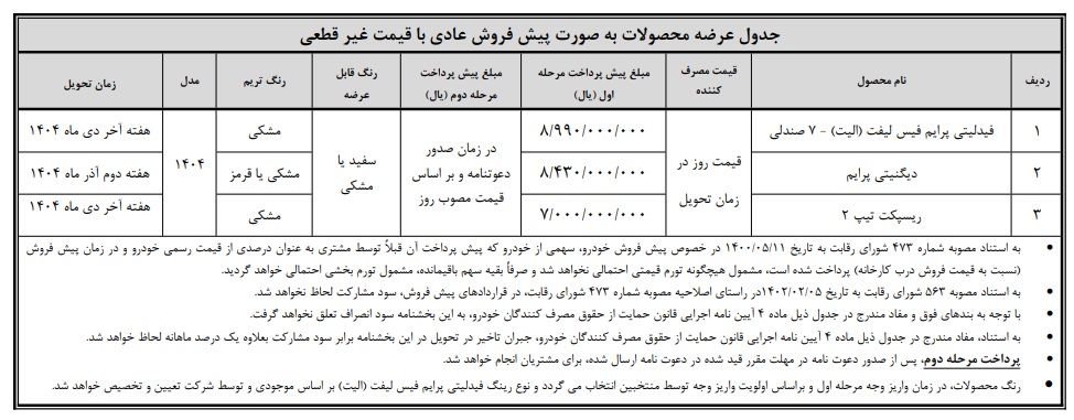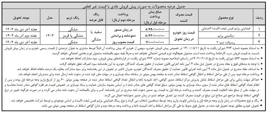 شرایط فروش فیدلیتی الیت ۵ نفره بهمن موتور اعلام شد