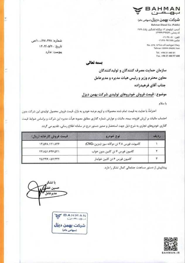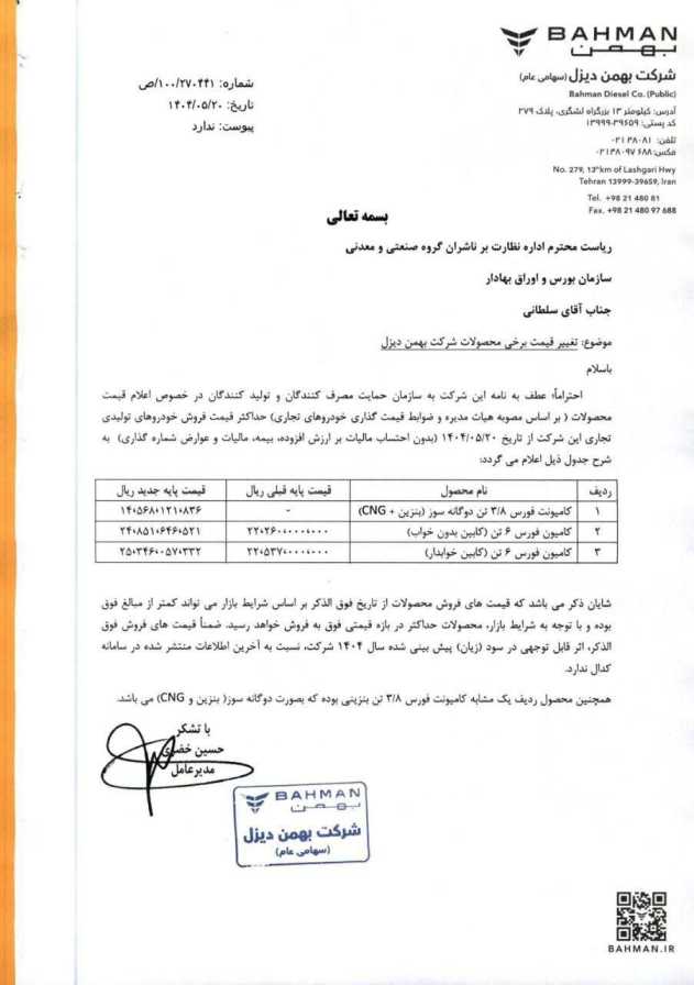 بخشنامه جدید فروش انواع محصولات بهمن دیزل ویژه تیر ماه ۱۴۰۴ با تخفیف اعلام شد