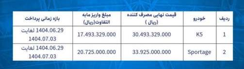 فراخوان تکمیل وجه کیا اسپورتیج برساوش مهرماه ۱۴۰۴