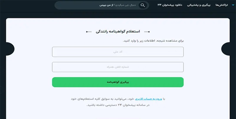 ۱. رهگیری گواهی‌نامه از طریق سامانه پیشخوان ۲۴